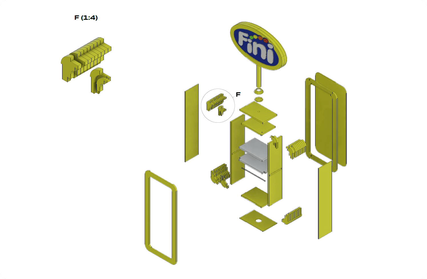 Fabricação Avançada: O projeto integra processos de serralharia fina e usinagem CNC de alta precisão (Router e Laser) com acabamentos manuais detalhados. A escolha do revestimento em laminado de alta pressão (fórmica) garante durabilidade superior em áreas de alto contato, enquanto o uso de acrílico técnico com corte CNC nas estruturas luminosas cria um volume espacial que funciona como um marco visual estratégico na planta do shopping.